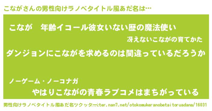 | 意味不明あだ名 | 『とにかく怪しいこなが』『自称こなが』 |