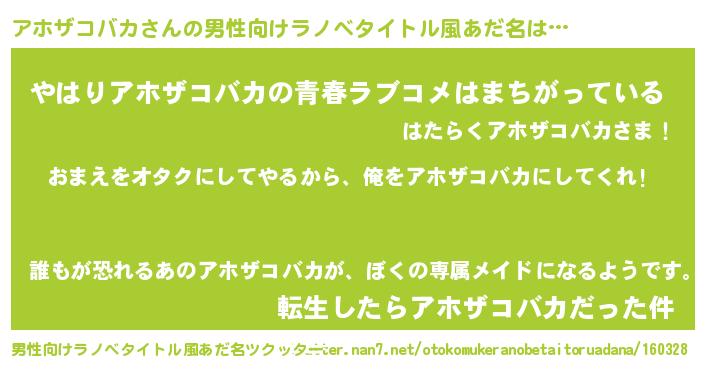 | 女子向けラノベタイトル風あだ名 | 『アホザコバカ夫妻のなれそめ』 |