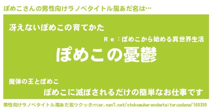 | 女子向けラノベタイトル風あだ名 | 『ぽめこ姫と円卓の騎士』『闇のぽめこ』 |