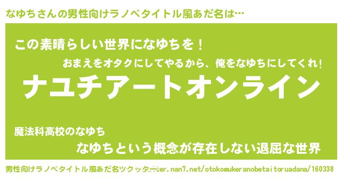 | 胡散臭い通販商品みたいなあだ名 | 『億万長者になれる霊験あらたかなお札…その名も「なゆち」』 |