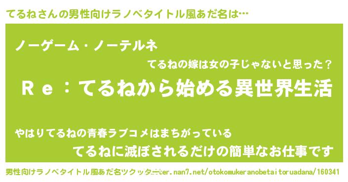 | 女子向けラノベタイトル風あだ名 | 『てるねストレイドッグス』 |
