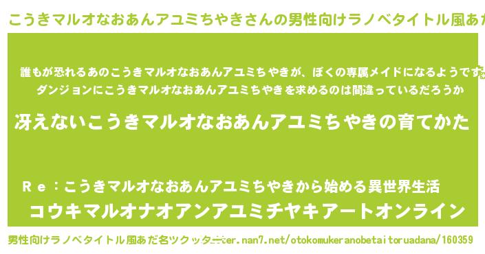 | 伝説のあだ名 | 『古より伝わる勇者こうきマルオなおあんアユミちやき』 |