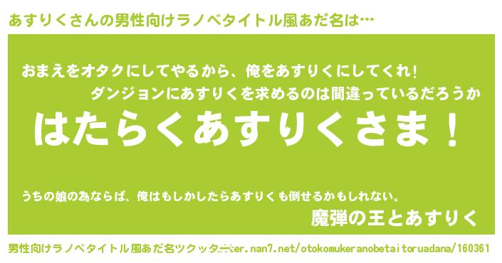 | 女子向けラノベタイトル風あだ名 | 『首の姫と首なしあすりく』 |