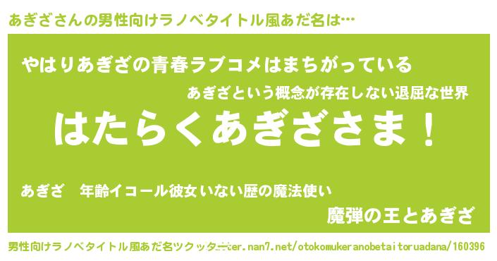 | ヒーロー風カッコイイあだ名 | 『ウルトラあぎざマン』『仮面アギダー』 |