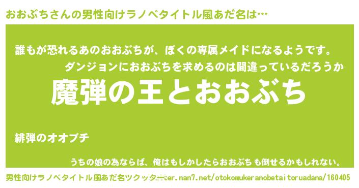 | 意味不明あだ名 | 『住所不定無職おおぶち(40歳)』 |