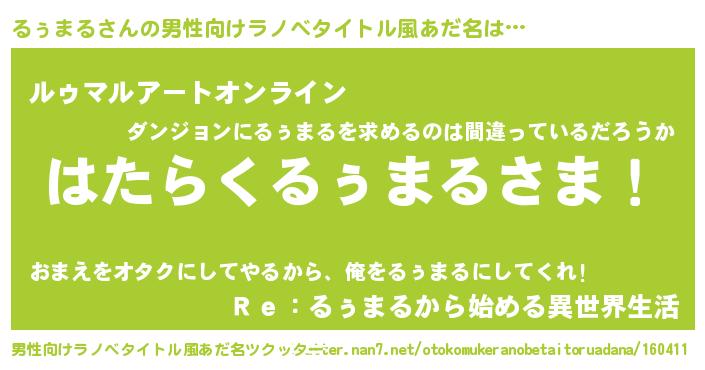 | 伝説のあだ名 | 『伝説の傭兵るぅまる』 |