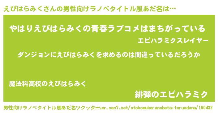 | 伝説のあだ名 | 『孤高の魔法使いえびはらみく』 |
