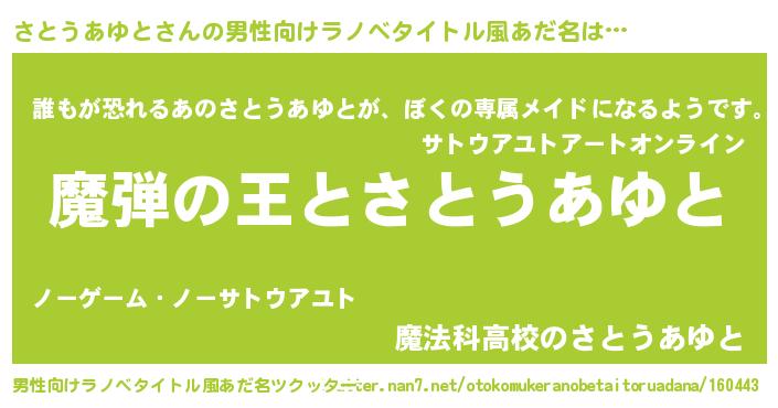 | 伝説のあだ名 | 『古より伝わる暗殺者さとうあゆと』 |