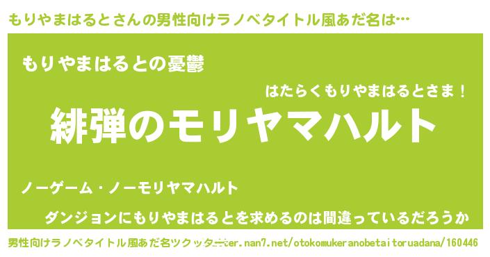 | 女子向けラノベタイトル風あだ名 | 『シンデレラもりやまはると家の靴箱館』 |