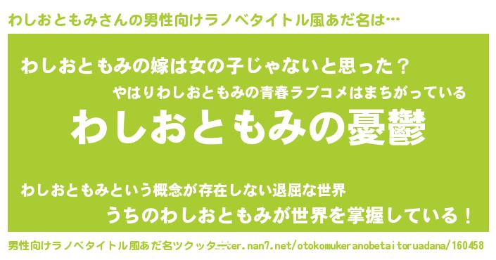 | 女子向けラノベタイトル風あだ名 | 『わしおともみ姫と円卓の騎士』 |