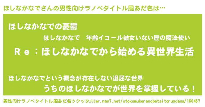 | 女子向けラノベタイトル風あだ名 | 『闇のほしなかなで』 |