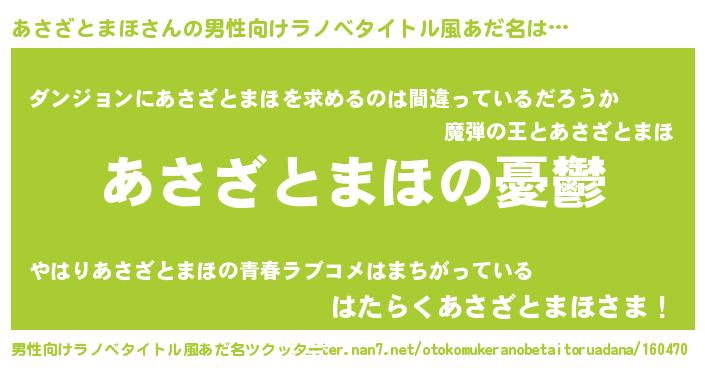 | 胡散臭い通販商品みたいなあだ名 | 『必ず成功する霊験あらたかなお札…その名も「あさざとまほ」』 |