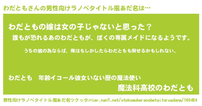 | ファンタジー風あだ名 | 『エターナルワダトモー』『ゼワダトゥ』 |