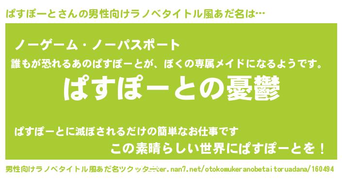 | 女子向けラノベタイトル風あだ名 | 『(仮)ぱすぽーとのやんごとなき事情』 |