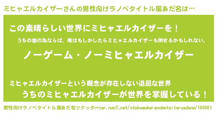 | 女子向けラノベタイトル風あだ名 | 『死神ミヒャエルカイザーの再婚』 |