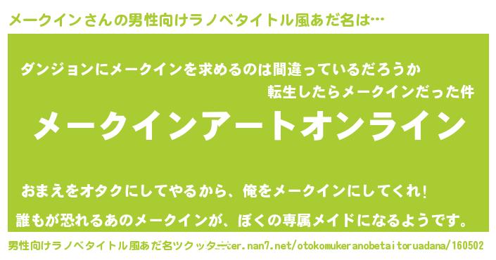 | 胡散臭い通販商品みたいなあだ名 | 『モテモテ間違いなし水晶球…その名も「メークイン」』 |