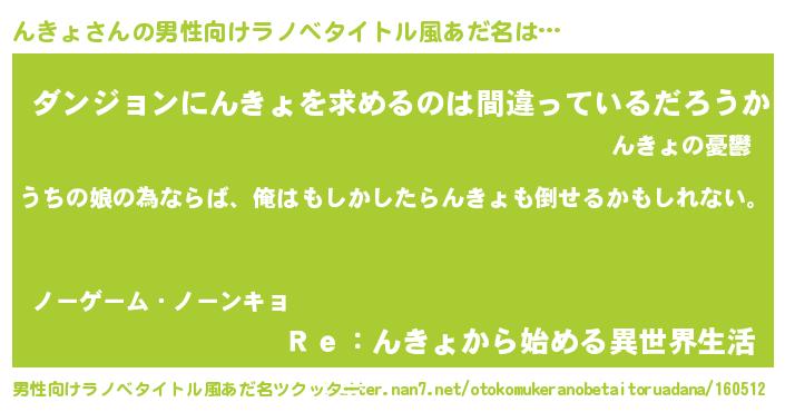 | 女子向けラノベタイトル風あだ名 | 『んきょの婚約者』『んきょは平凡を望む』 |