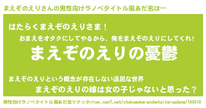 | 女子向けラノベタイトル風あだ名 | 『まえぞのえり姫と円卓の騎士』 |