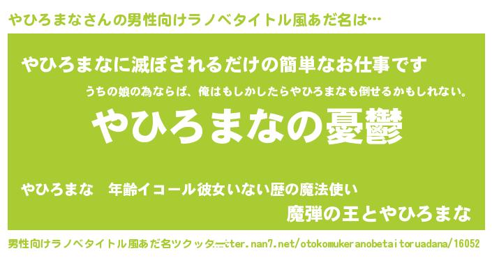 | 女子向けラノベタイトル風あだ名 | 『(仮)やひろまなのやんごとなき事情』 |