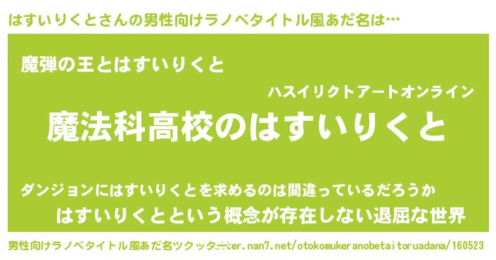 | 女子向けラノベタイトル風あだ名 | 『はすいりくとなんてお断りですっ。』 |