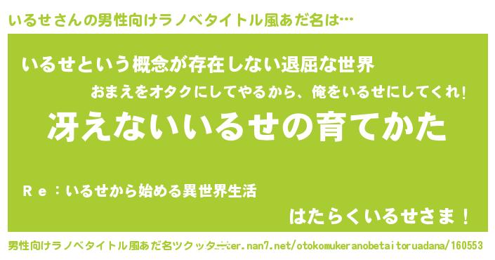 | 胡散臭い通販商品みたいなあだ名 | 『来世でも幸せになれる健康食品…その名も「いるせ」』 |
