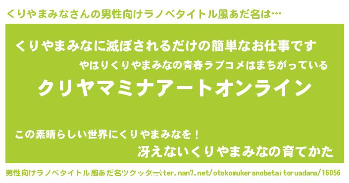 | 胡散臭い通販商品みたいなあだ名 | 『モテモテ間違いなし霊験あらたかなお札…その名も「くりやまみな」』 |
