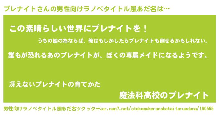 | 意味不明あだ名 | 『永久保存プレナイト』『自称プレナイト』 |
