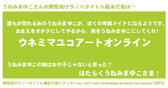 | 胡散臭い通販商品みたいなあだ名 | 『モテモテ間違いなしブレスレット…その名も「うねみまゆこ」』 |