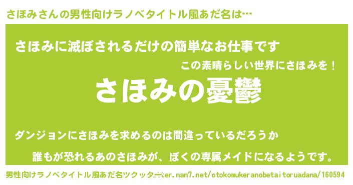 | 女子向けラノベタイトル風あだ名 | 『(仮)さほみのやんごとなき事情』 |