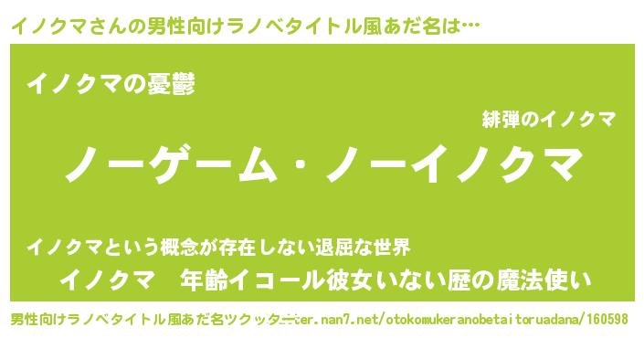 | 女子向けラノベタイトル風あだ名 | 『イノクマ恋絵巻』 |