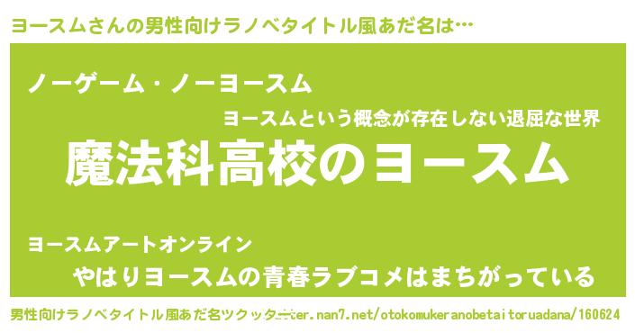 | 女子向けラノベタイトル風あだ名 | 『ヨースムアンティーク』 |