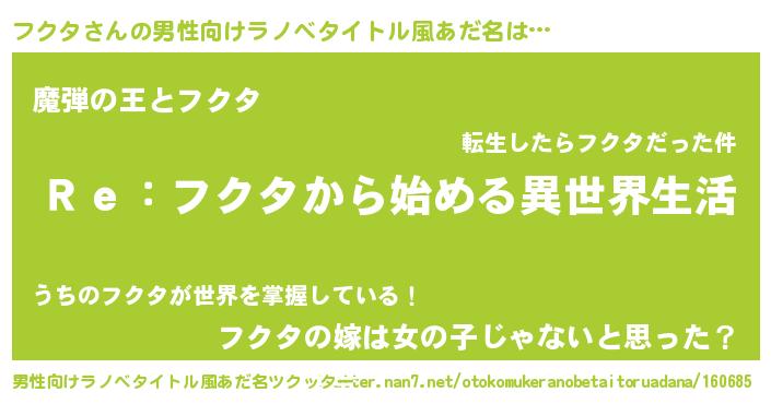 | 女子向けラノベタイトル風あだ名 | 『闇のフクタ』『フクタの卵を拾いまして』 |