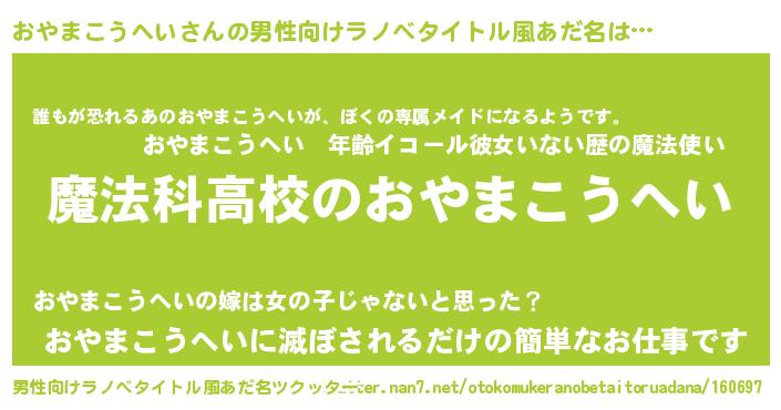 | ヘコむあだ名 | 『おやまこうへい(小並感)』『おやを』 |