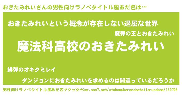 | 女子向けラノベタイトル風あだ名 | 『おきたみれいアンティーク』 |