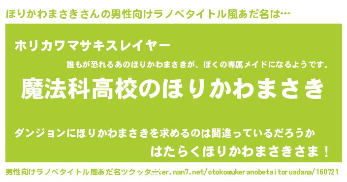 | 女子向けラノベタイトル風あだ名 | 『ほりかわまさきなんてお断りですっ。』 |