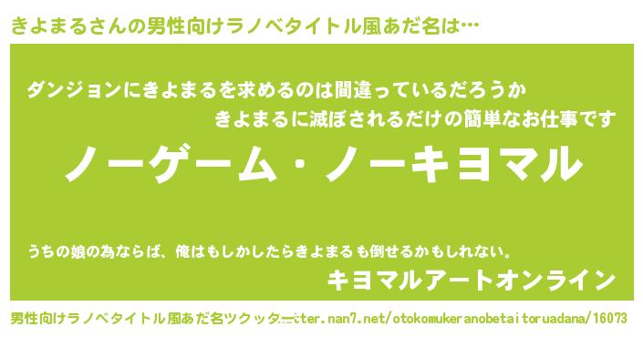 きよまるさんの男性向けラノベタイトル風あだ名をツクッター!