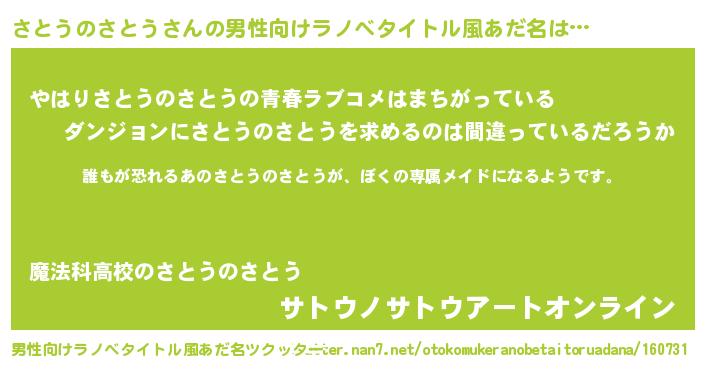 | 意味不明あだ名 | 『永久保存さとうのさとう』 |