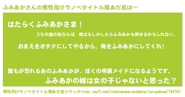 | ヘコむあだ名 | 『ふみを』『牛乳』『ふみあか(笑)』 |
