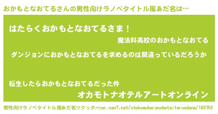 | 女子向けラノベタイトル風あだ名 | 『おかもとなおてるは平凡を望む』 |