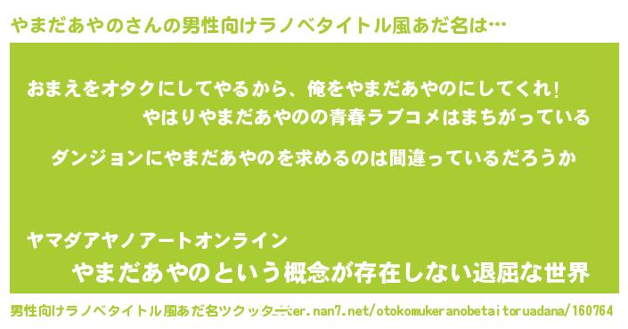 | 胡散臭い通販商品みたいなあだ名 | 『信頼と実績のペンダント…その名も「やまだあやの」』 |