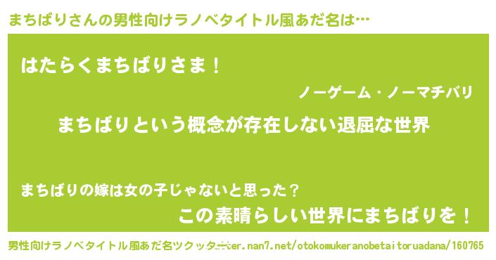 | 女子向けラノベタイトル風あだ名 | 『まちばりの契約王妃』『まちばり恋絵巻』 |