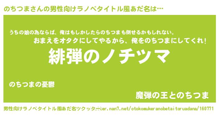 | 意味不明あだ名 | 『のちつまフォーエバー』『自称のちつま』 |