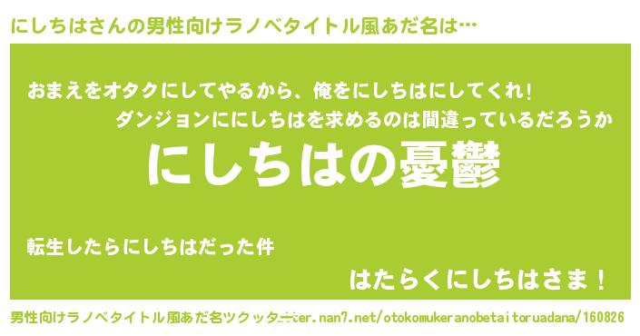 | 胡散臭い通販商品みたいなあだ名 | 『必ず成功するブレスレット…その名も「にしちは」』 |
