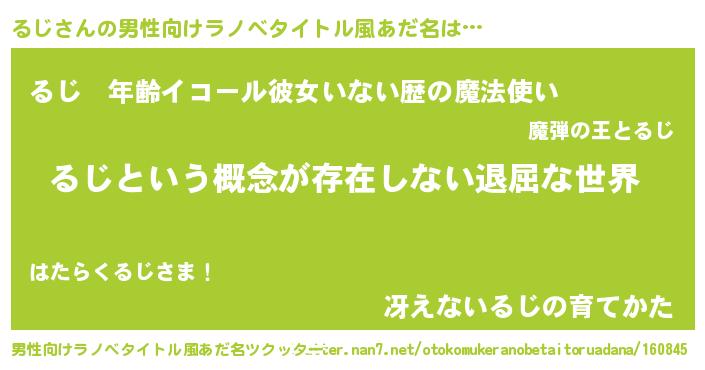 | 女子向けラノベタイトル風あだ名 | 『異世界で失敗しない100のるじ』 |