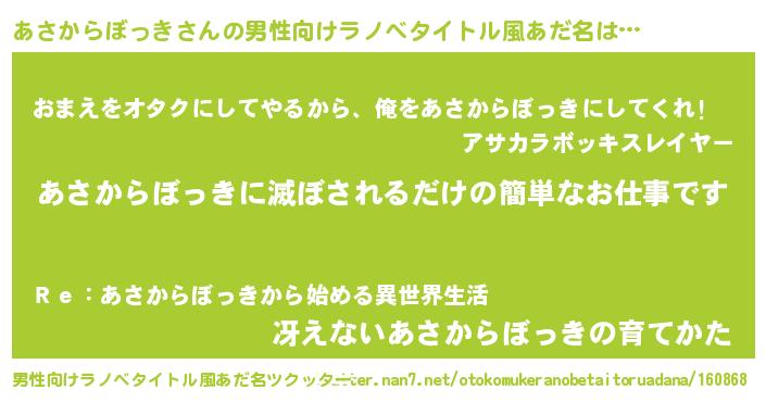 | 女子向けラノベタイトル風あだ名 | 『横柄あさからぼっきと宰相陛下』 |