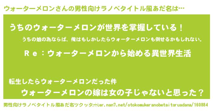 | 女子向けラノベタイトル風あだ名 | 『闇のウォーターメロン』 |