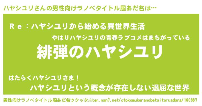 | ヒーロー風カッコイイあだ名 | 『超時空戦士ハヤシユリ』『仮面ハヤダー』 |