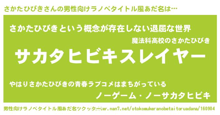 | 胡散臭い通販商品みたいなあだ名 | 『絶対に幸福をもたらす健康食品…その名も「さかたひびき」』 |