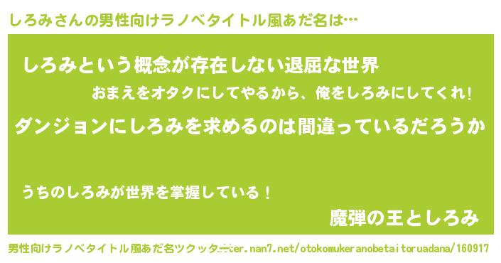 | 意味不明あだ名 | 『とにかく怪しいしろみ』『自称しろみ』 |