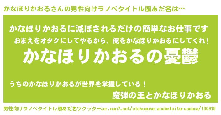| 胡散臭い通販商品みたいなあだ名 | 『必ず成功する霊験あらたかなお札…その名も「かなほりかおる」』 |